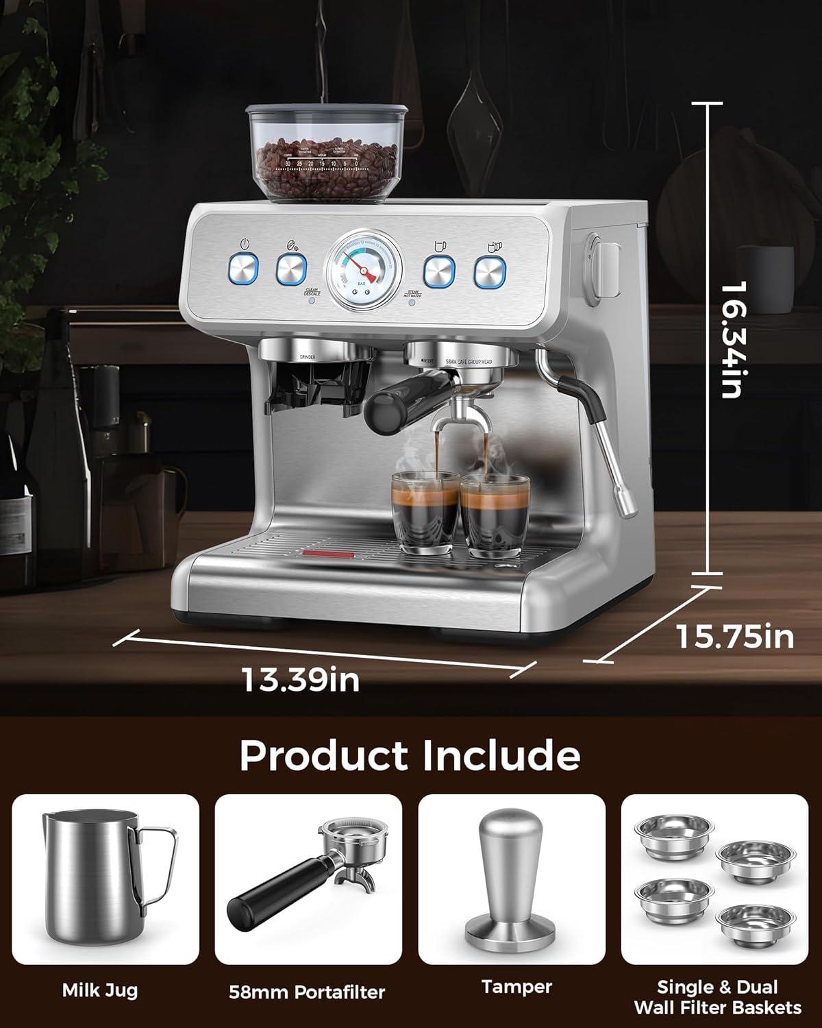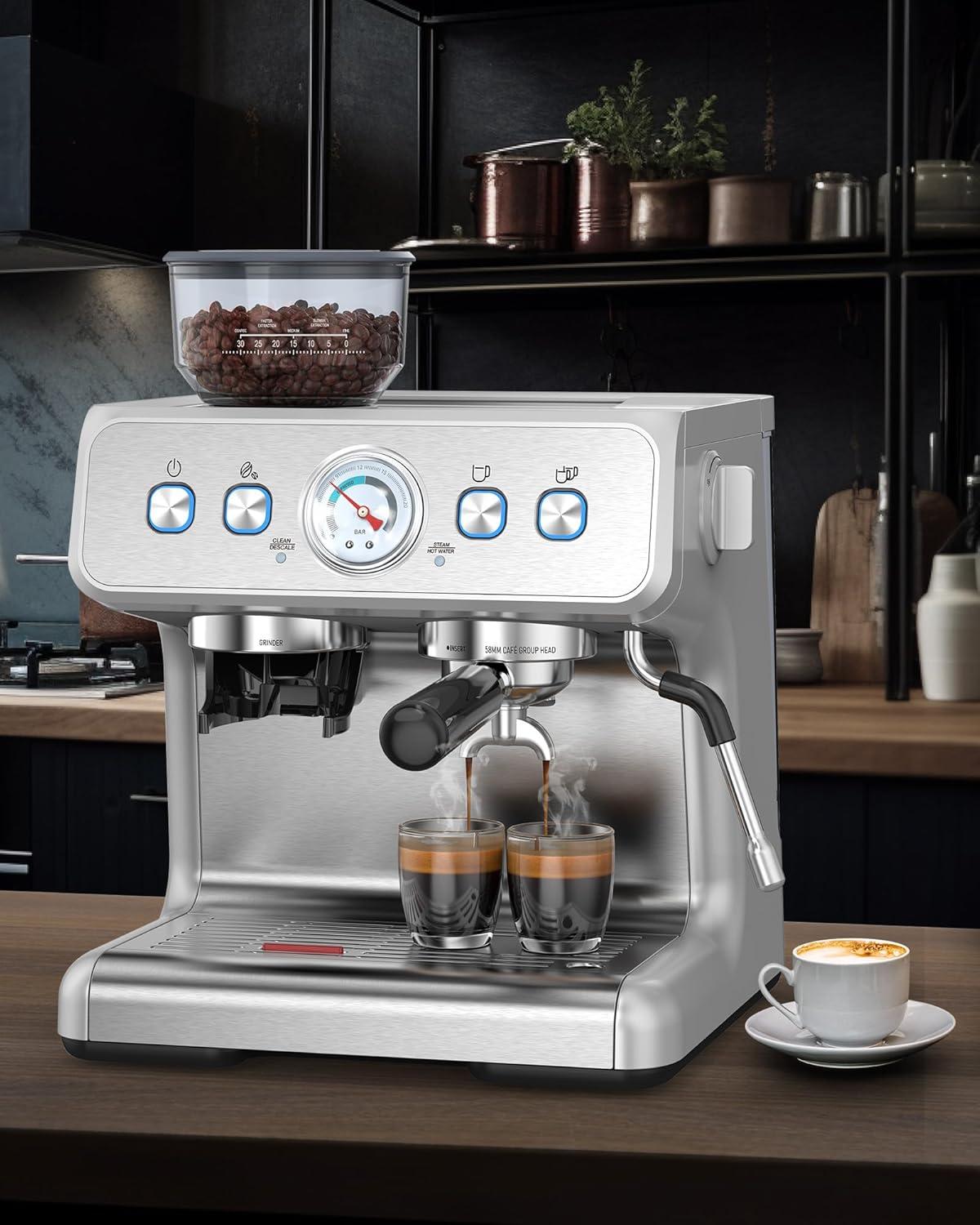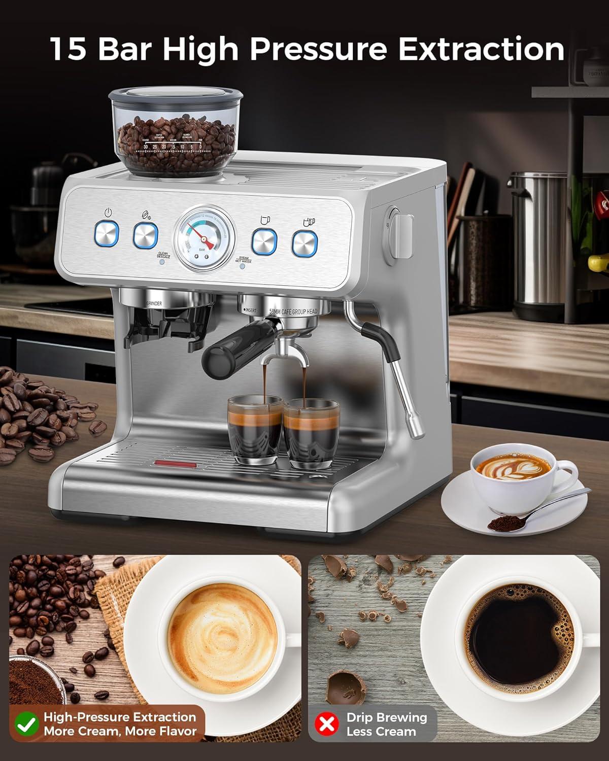 The coffee maker has an integrated grinding design, which is more beautiful and convenient. The COWSAR Professional Espresso Maker is also equipped with a grinding scale knob. By turning the adjustment knob, you can accurately control the size of the grinding particles to meet the needs of different groups