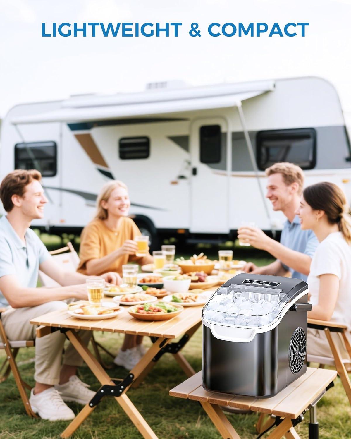 Portable and Space-Saving: This ice maker has a compact design and comes with a handle, making it easy to carry. The ice maker weight is 14.56 pounds.