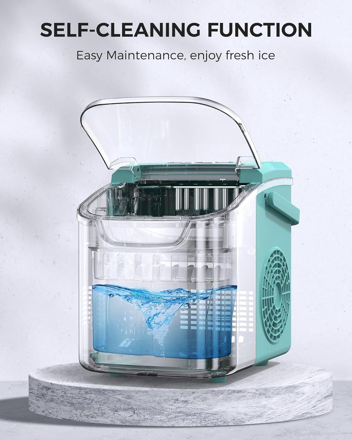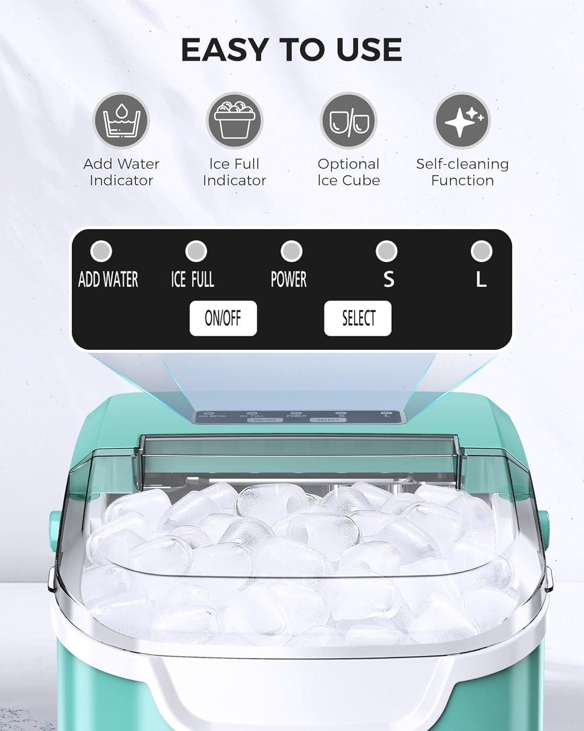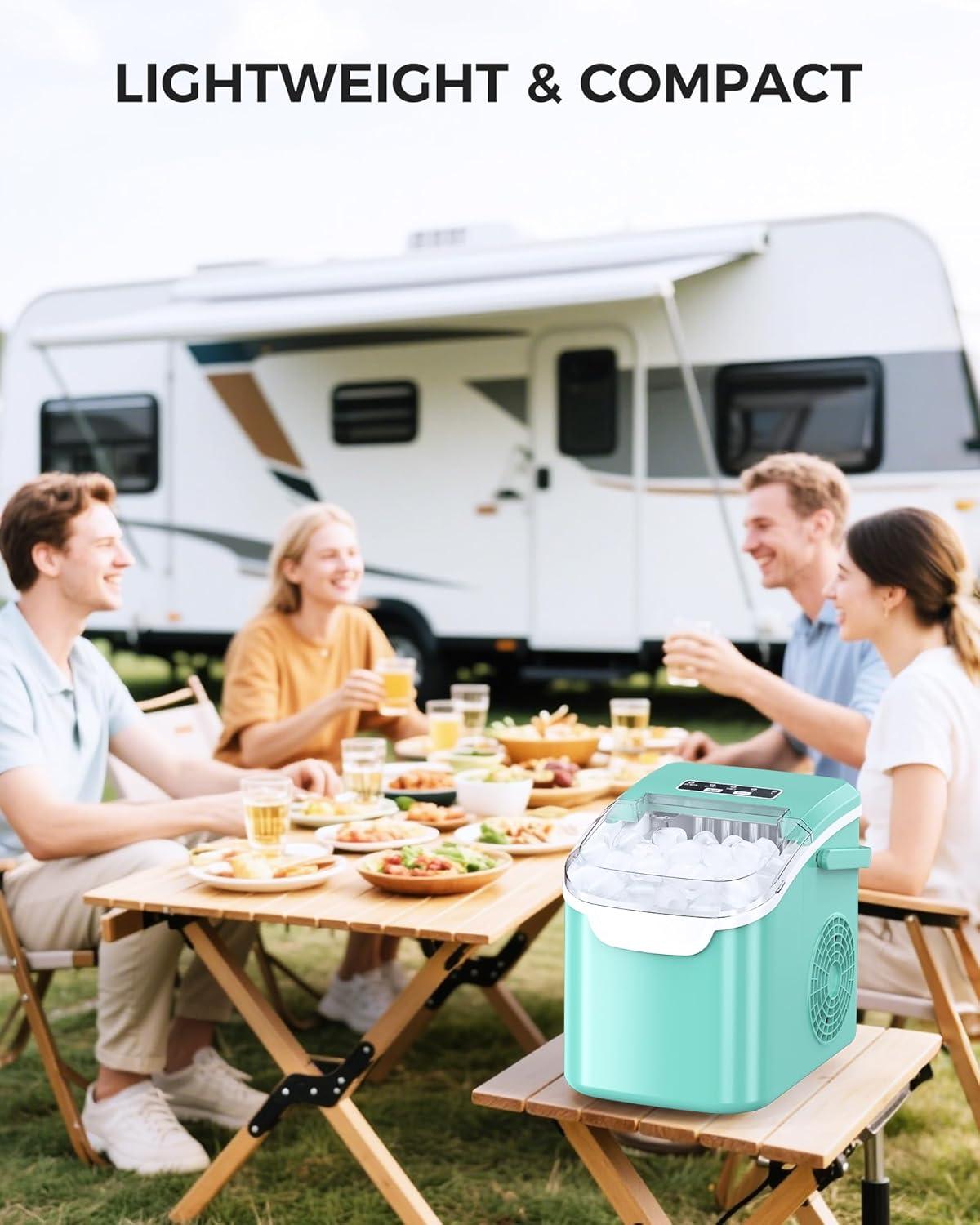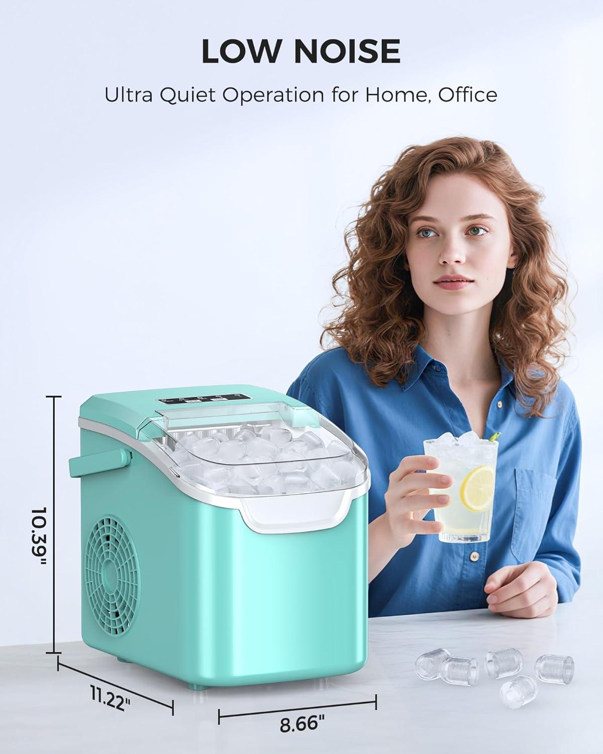 Portable and Space-Saving: This ice maker has a compact design and comes with a handle, making it easy to carry. The ice maker weight is 14.56 pounds.