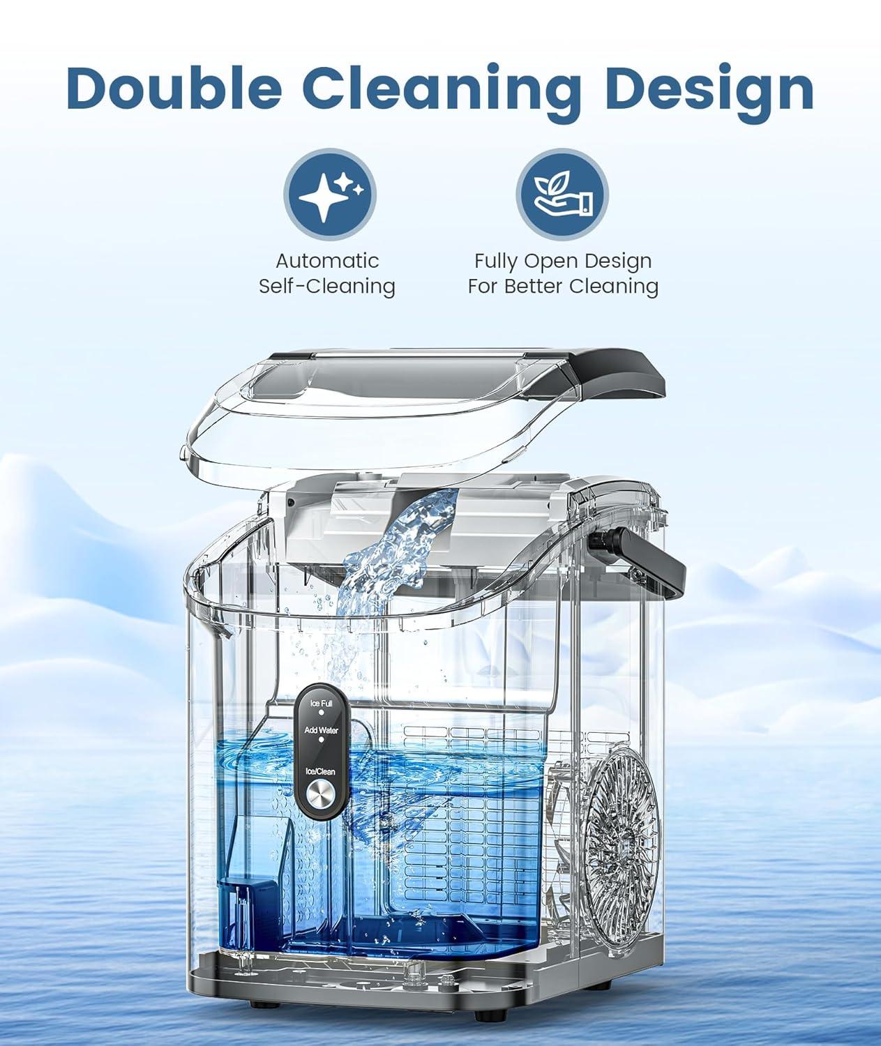 Automatic Self-Cleaning: The Cowsar nugget ice maker boasts a thorough self-cleaning mode to save you the hassle of frequent cleaning. Additionally, its detachable top makes it easy to access and clean manually for deep cleaning or descaling