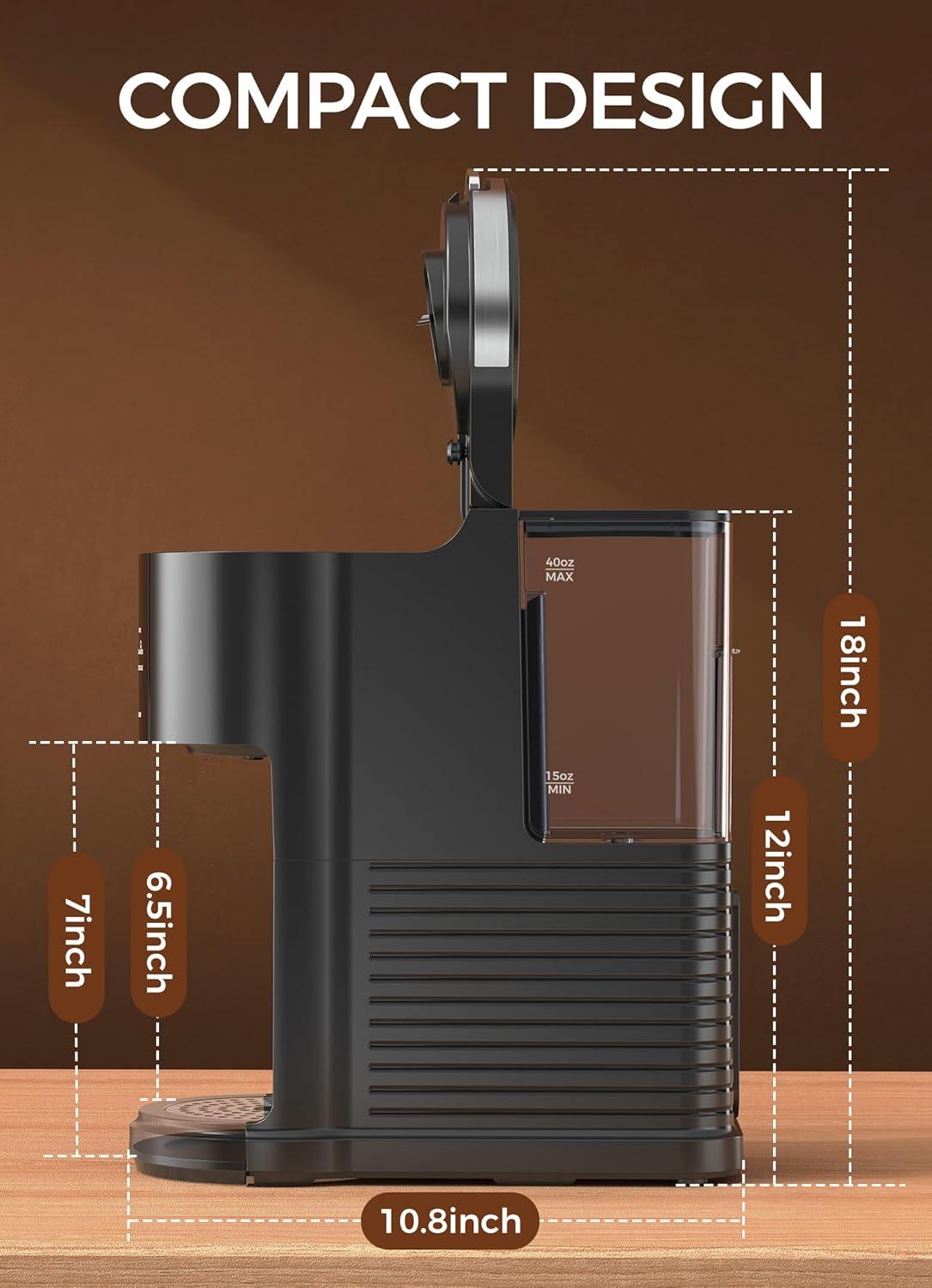 Easy to Clean: Designed for easy cleaning with a detachable 40 oz water tank and removable drip tray. The descaling indicator lights up when it's time for a thorough cleaning